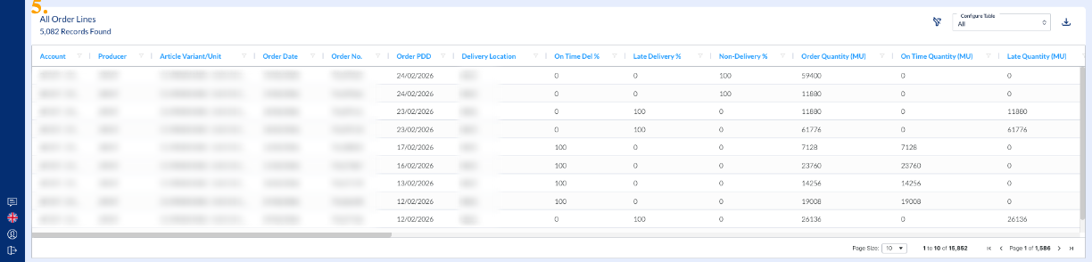 With the completely new "Contributors" section, you have access to even more insightful analytics. Top-interest articles with big impact on OTIF are highlighted here - "Negative OTIF Contributors" and "Positive OTIF Contributors", as well as the list of All Order Lines (so not only Failed Order Lines - FOLs).